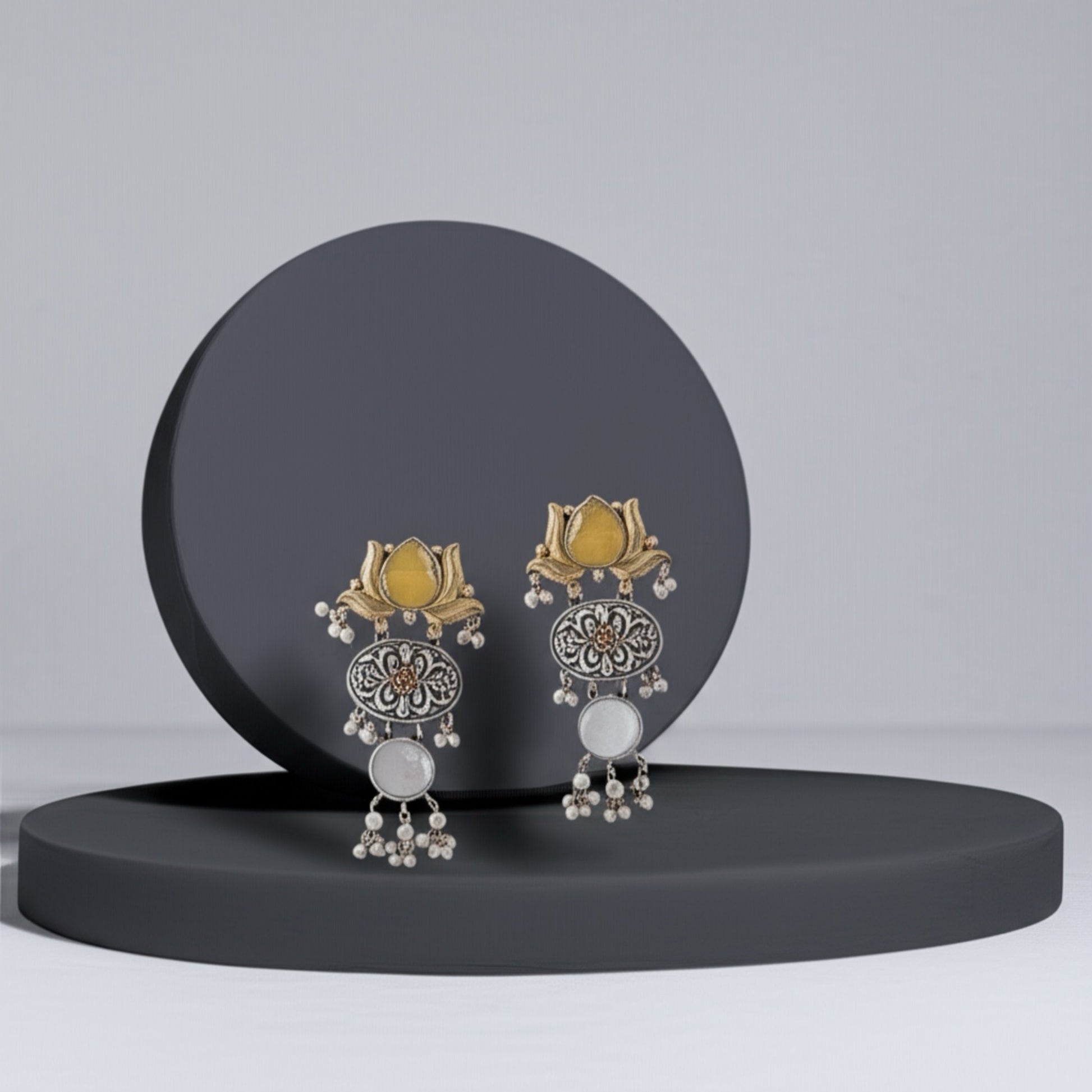 94209-ERO Pretty Precious Fashion Oxidised Silver Stylish Party Wear Earrings for Women and Girls-Yellow