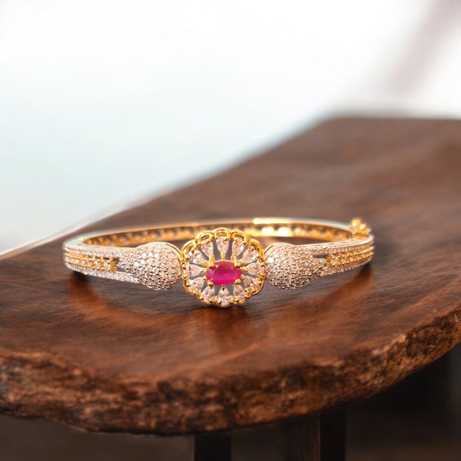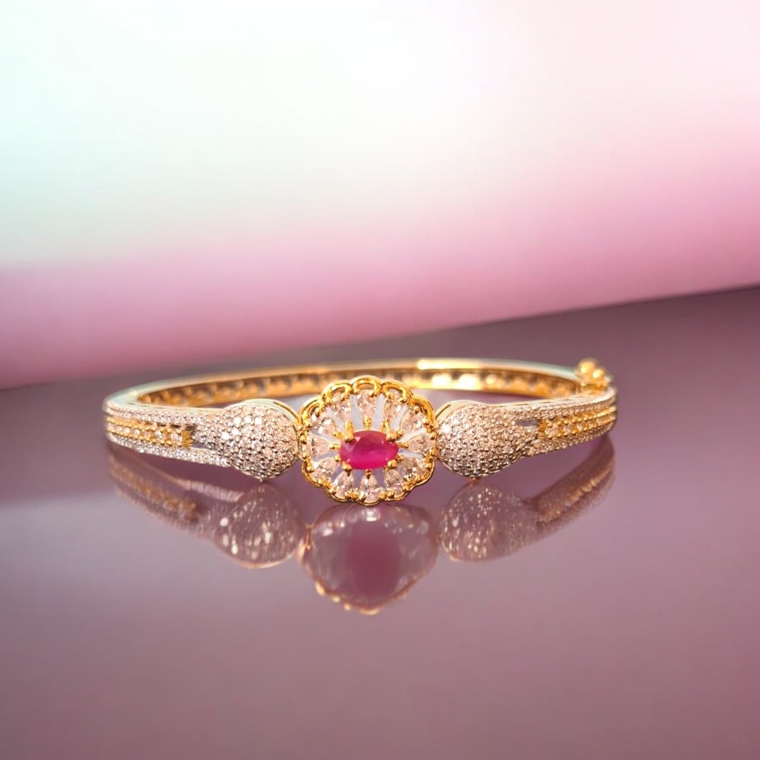94259-KD Cubic Zirconia Classic Kada With Gold Plating-Ruby