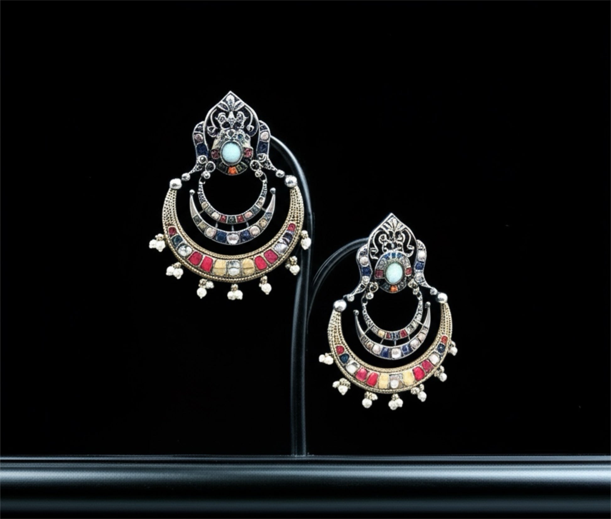 94509-ERO Pretty Precious Fashion Oxidised Silver Stylish Party Wear Earrings for Women and Girls-Multi
