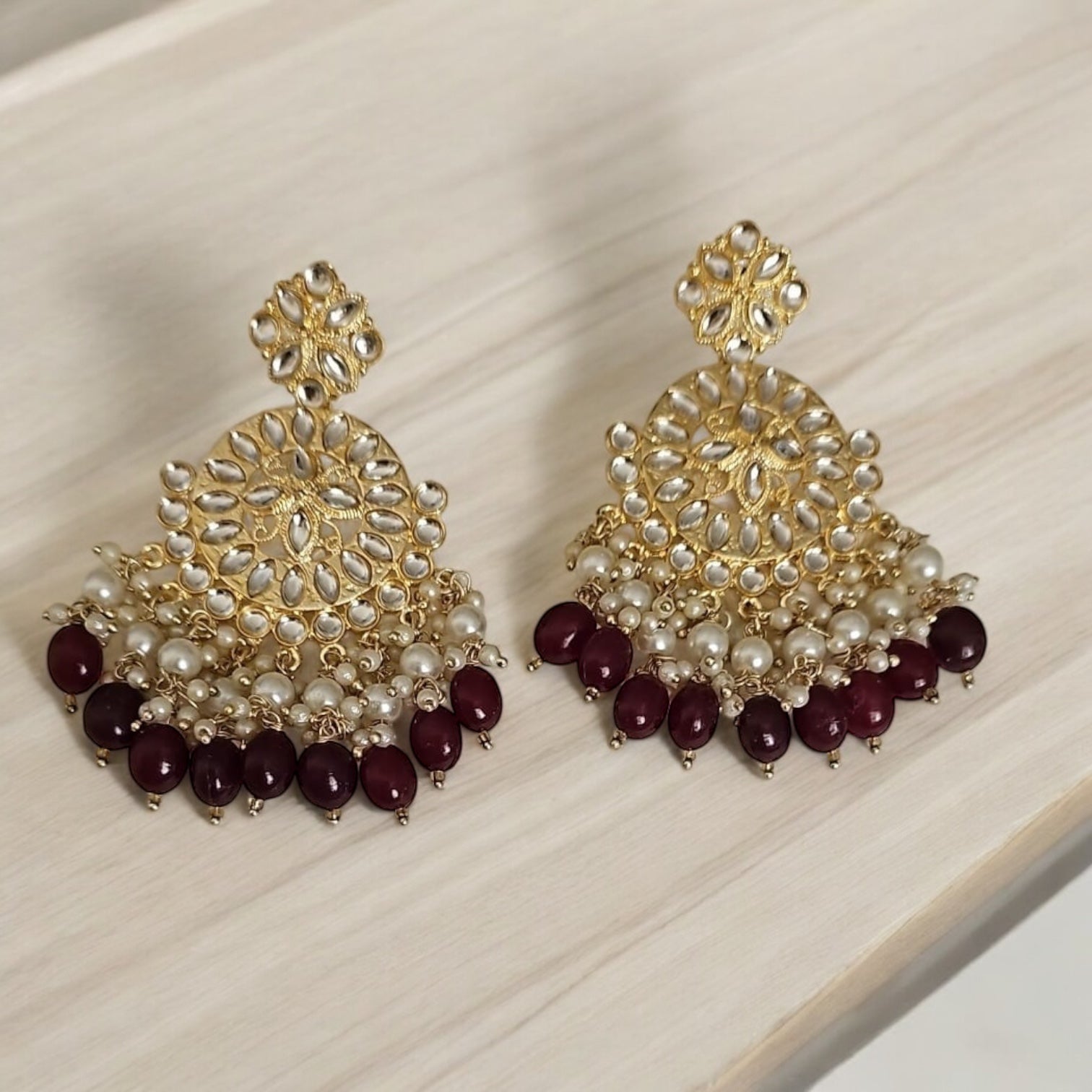 IW-000171-Indo Western (Kundan) Earring-Maroon