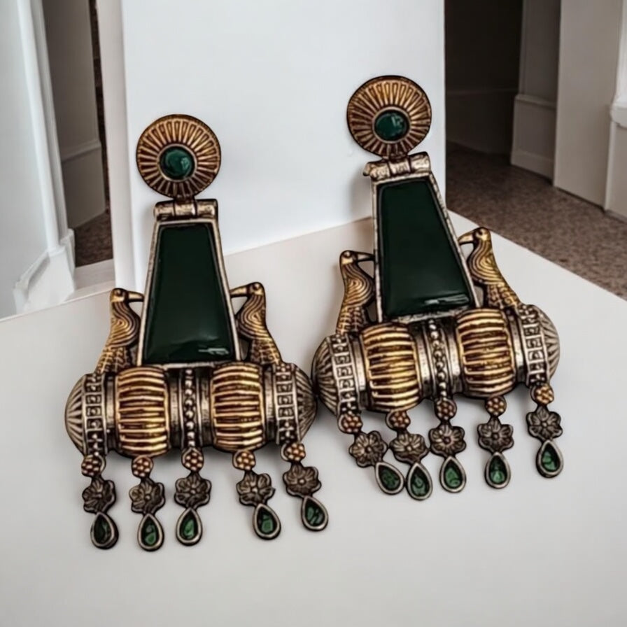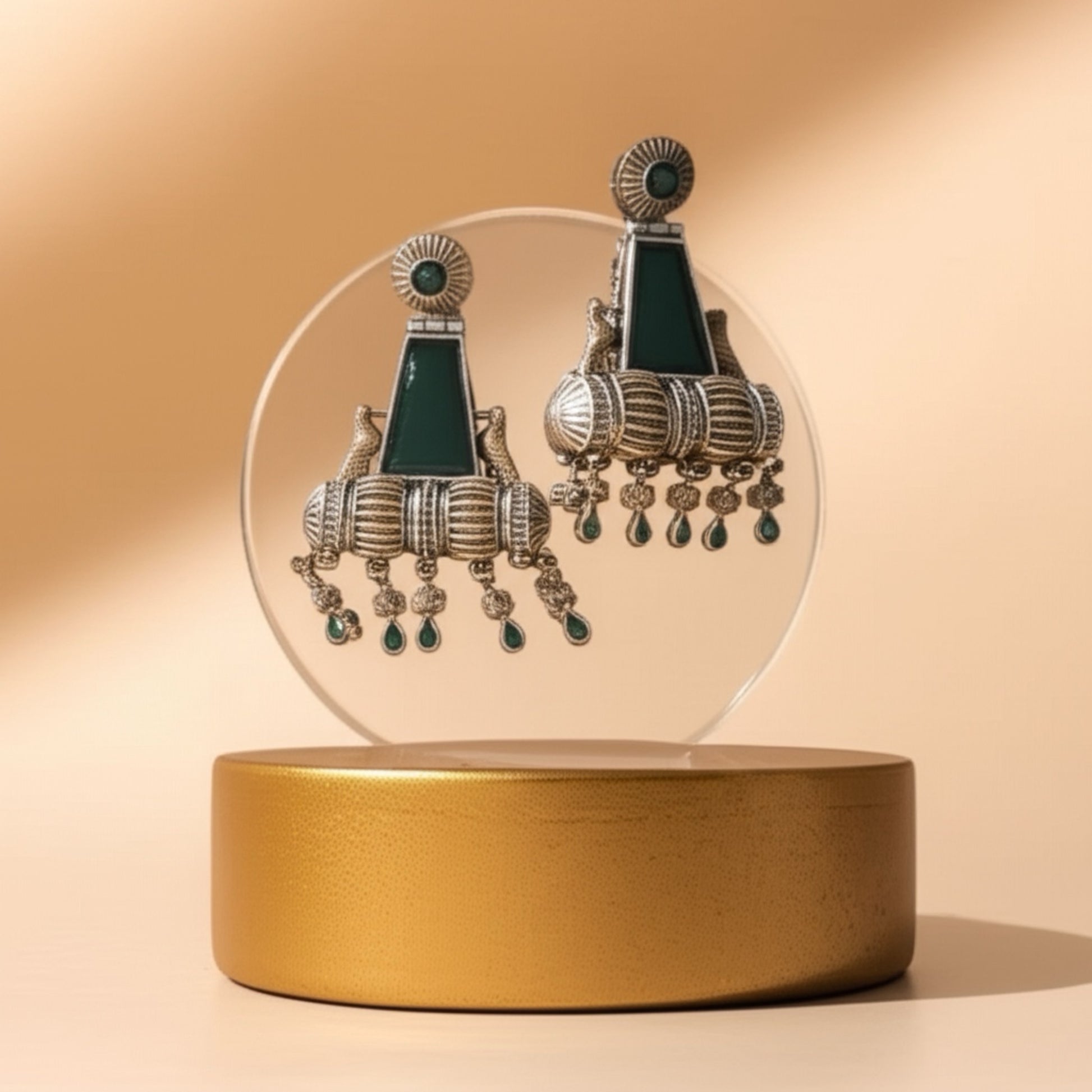 OXE-35425 Pretty Precious Fashion Oxidised Silver Stylish Party Wear Earrings for Women and Girls-Green