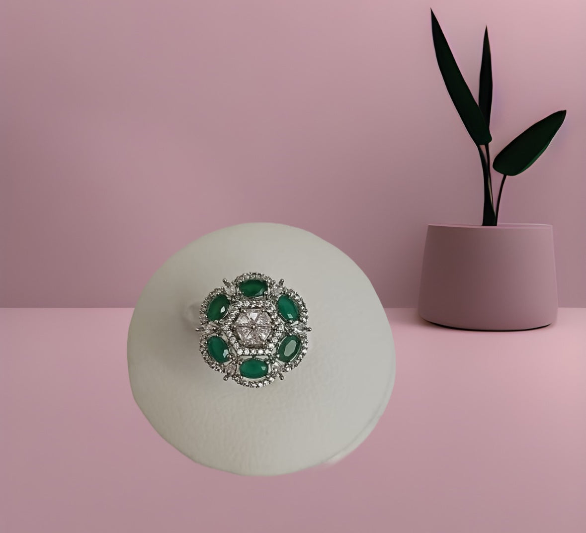 Ring200 Cz Adjustable Ring Green