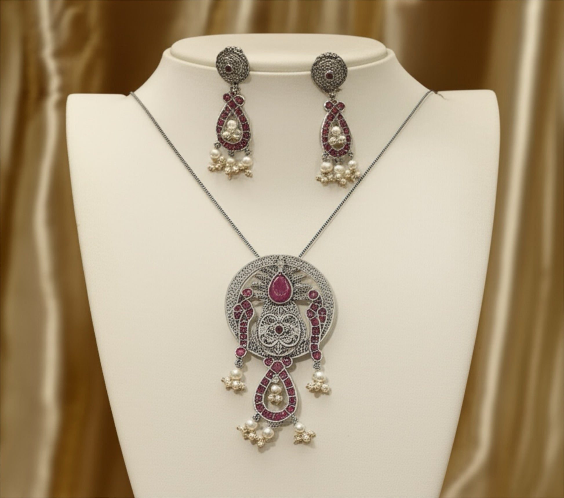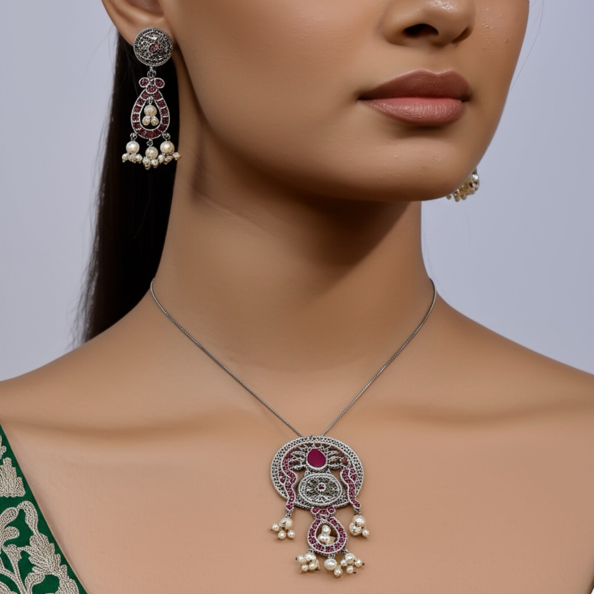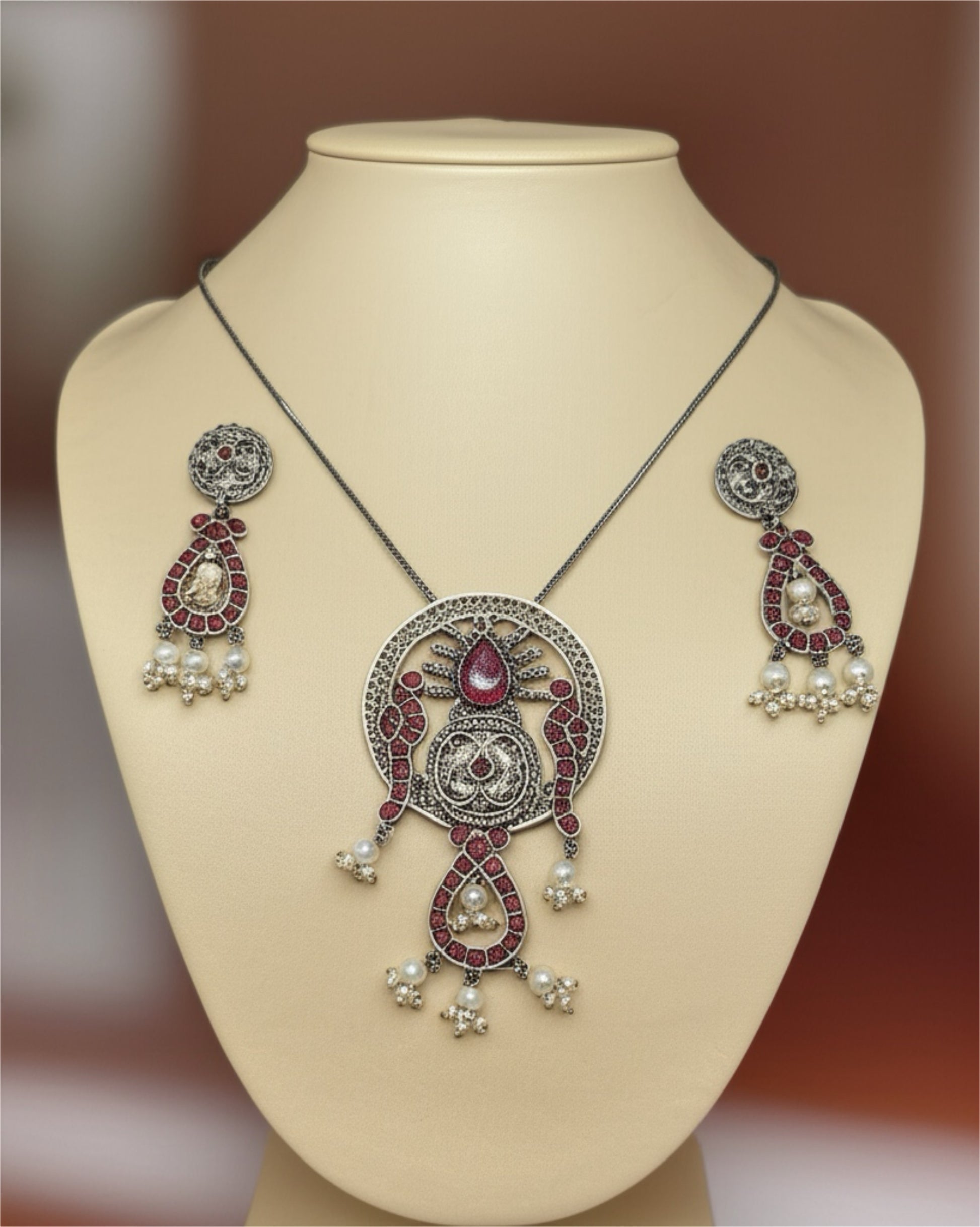 EOX35350 Pendant Set With Oxidized Plating-Ruby